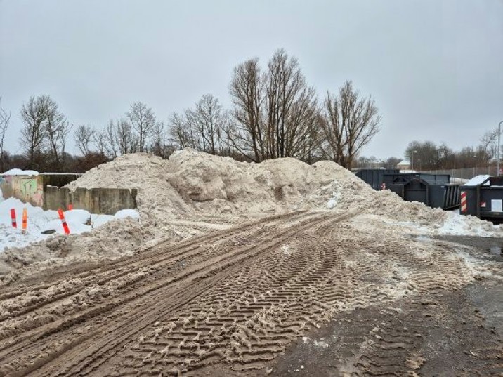 Sneen fra vejene er ikke ren og kan derfor ikke køres til naturområder eller andre friarealer og bliver derfor kørt ud på Arealdrifts område på Firskovvej, så længe der er plads (se billede herunder).