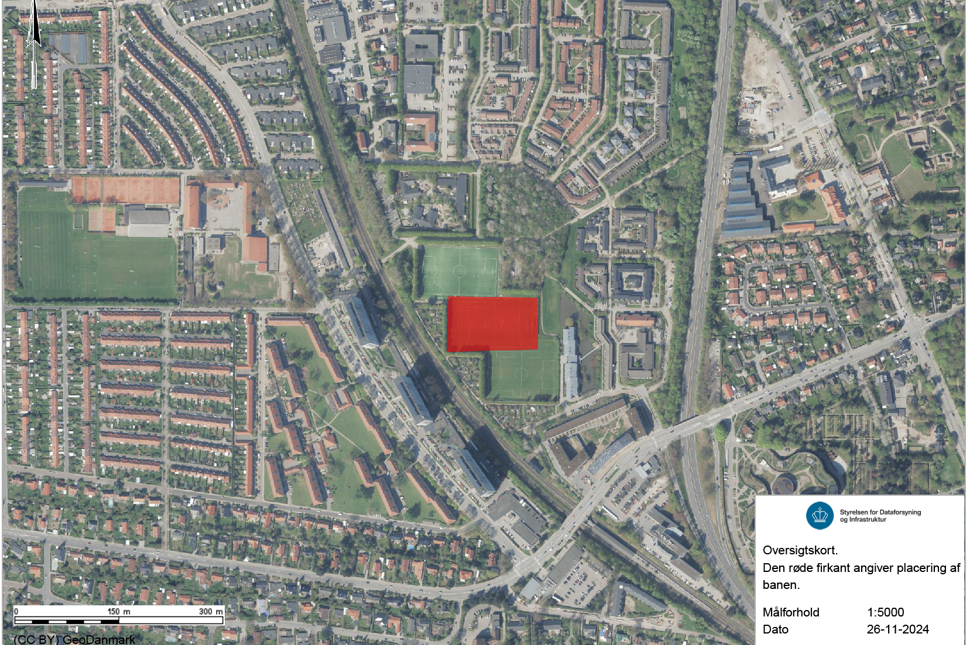Offentliggørelse af ansøgning om etablering af kunstgræsbane på Virumgårds jorde.